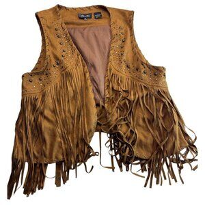 Miss Me Women's Beige Sleeveless Faux Leather Fringe Vest Top