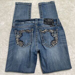 Miss Me Women's Blue Skinny Cotton Rhinestone Jeans Size 30 x 30.5''