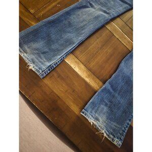 Hem fraying at the bottom adds a distressed touch. Inseam = 33 inches.