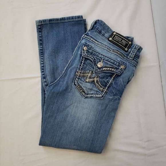 Miss Me Womens Boyfriend Capri Jeans Blue Distressed Medium Wash Mid Rise 28
