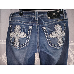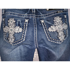 Miss Me Women's Buckle Jeans Size 29 Signature-Rise Boot Cross Embellishments