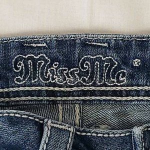 Miss Me Women's Capri Jeans Blue Stretch Embroidered Dark Wash Low Rise Denim 26
