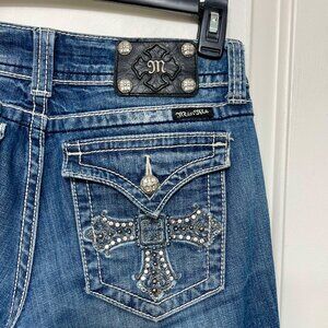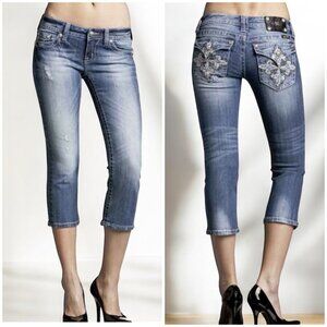 Miss Me Womens Cross Embellished Capri Jeans Medium Wash Stretch Denim Size 30