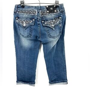 Miss Me Womens Cuffed Capri Jeans Size 29 Flap Pocket Bling Rhinestone Cropped