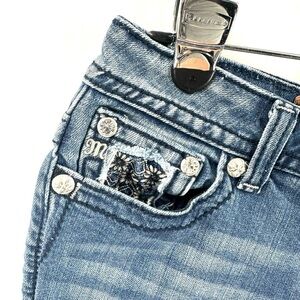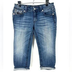 Miss Me Womens Cuffed Capri Jeans Size 29 Flap Pocket Bling Rhinestone Cropped