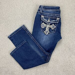 Miss Me Women's Cuffed Capri Thick Stitch Embellished Stretch Jeans | Size: 29