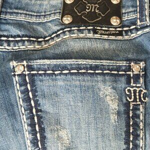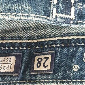 Miss Me Womens Distressed Boyfriend Capri Jeans Cropped Bling Size 28 JPB5014
