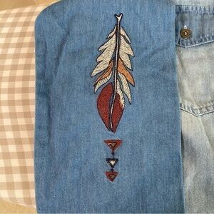 Miss Me Embroidered Fringe Denim Chambray Western Button Down Top