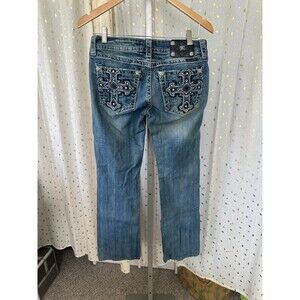 Miss Me Women's Factory Faded Embellished Pockets Signature Boot Denim Jeans 30
