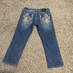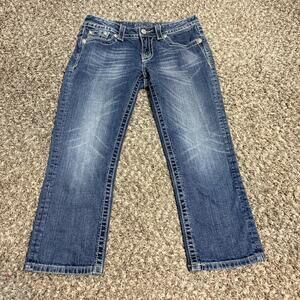 Miss Me Womens Jeans 28 Blue Denim Cropped Crop Bling Pockets Capri Y2K low rise
