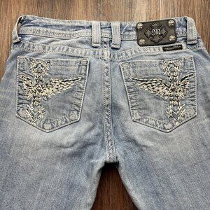 Miss Me Womens Jeans Sz 29 Boot Cut Low Rise Light Wash Embellished