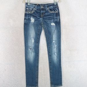 Miss Me Women's Low Rise Distressed Cuffed Skinny Jeans Waist 26