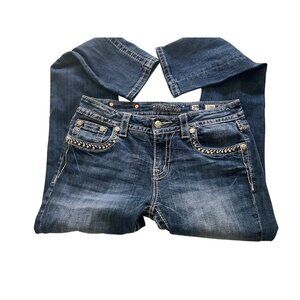 Miss Me Womens Mid-Rise Skinny Jeans With Embellished Pockets Size 29 Blue Cotto