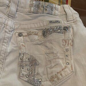 Miss Me Women's Shorts White Distressed Rhinestone Pockets Sz 27 (30 measured)