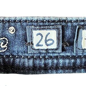 These Miss Me denim shorts blend style and comfort, featuring intricate embellishments for a fashionable touch. Tailored in a size 26, they are designed to provide a flattering fit. Constructed from durable denim, these shorts are ideal for casual outings or relaxed days, ensuring both style and long-lasting wear.