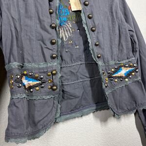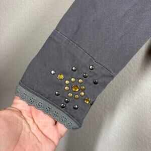 Miss Me Womens Size Small Studded Embroidered Military Jacket Gray Cotton Lace Trim
