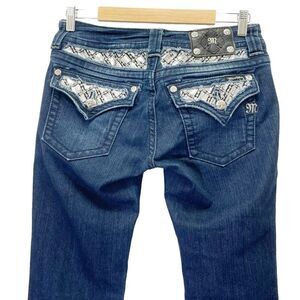 Miss Me Y2K Jeans Bling Rhinestone Back Flap Bootcut Dark Wash Women’s Size 29