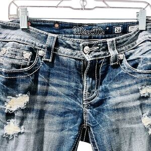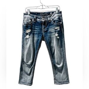 Miss Me Y2K Rhinestone Embroidered Bling Cuffed Capri Pants Size 28 Denim Jeans