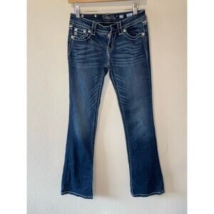 Miss Me Y2K Signature Boot Cut Medium Wash Glam Jeweled Classic Low Rise Jean 27