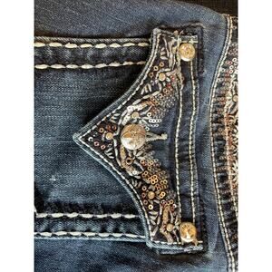 Miss Me Y2K Signature Boot Cut Medium Wash Glam Jeweled Classic Low Rise Jeans 27