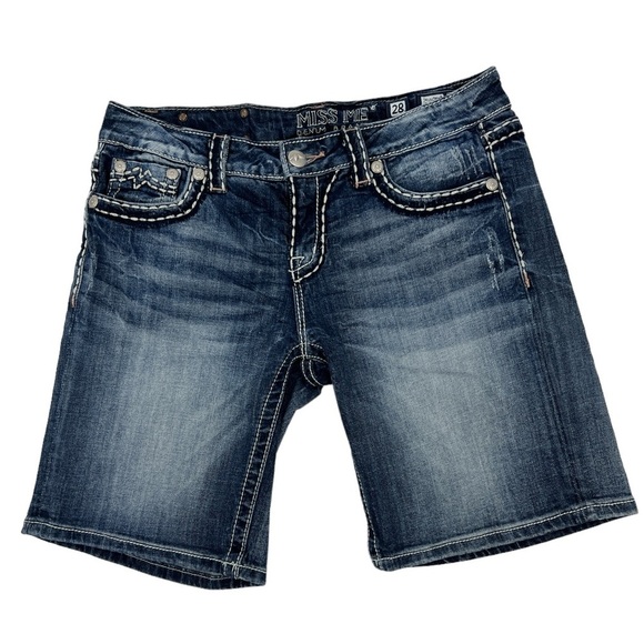 Miss Me Y2K faded flap pocket Bermuda Denim Jean shorts SZ 28 New