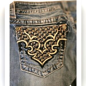Miss Me designer boot cut jeans in excellent condition. gorgeous jewels and gems embellished throughout and on back pockets with a fun embroidered design.