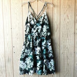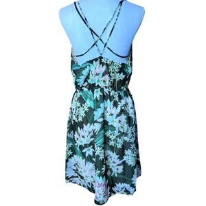 Miss Me strappy sleeveless sundress mini above or at knee (depending on height) cinched elastic waist, criss cross-over bust with snap close, V neck sweetheart neckline, billowy printed floral semi sheer chiffon layer over soft lining, women's size M medium (tagged a large) runs small, listing as a medium, (see measurements for fit) New with tags. NWT.