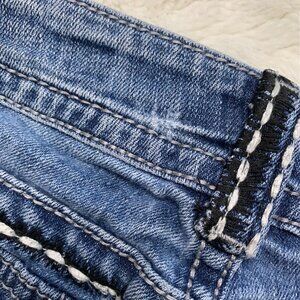 Pre-owned authentic Miss Me for Buckle Women’s Bling Wings Bootcut Denim Jeans Size 30 x 27”. Aprox measurements: Rise is 8" inches. Waist laying flat is 15" inches. Inseam is 27" inches. Has a patch inside from a mended hole. Has some wear throughout and holes in pockets. Some distressing. Please look at pictures for better reference. Happy Shopping! MAR23. B1
