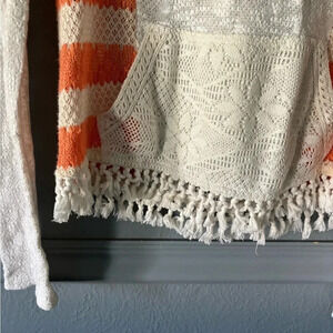 Miss Me | hooded | crochet | lace | striped| sweater | sweatshirt | medium