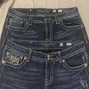 Two pairs of Miss Me jeans. Size 31. Good condition. Slight/normal wear around the cuff.