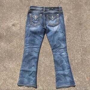 Miss Me mid rise boot jeans with faux flap back pockets HEMMED 28x29.5