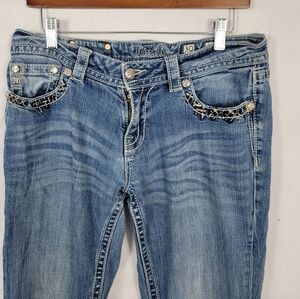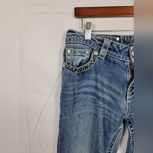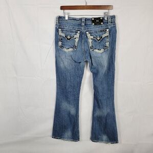 There are no holes or stains but there is some wear to the bottoms of the jeans
