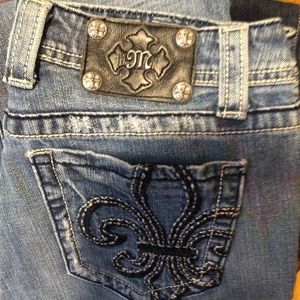 Miss Me size 31 blue skinny bootcut jeans embroidered fleur de lis pocket