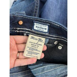 Miss Me women's 27 boot dark wash mid-rise bootcut jeans bling stud 31" inseam