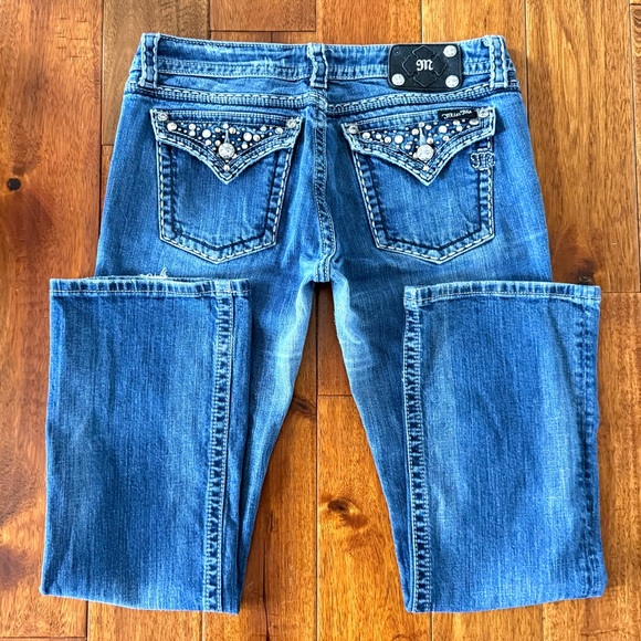 Miss Me women’s 32 beaded denim boot cut low rise jeans
