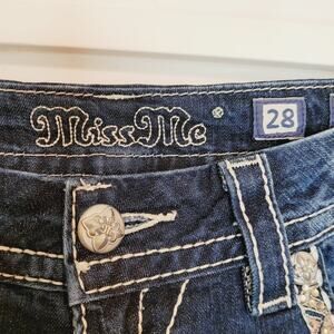 Miss Me womens sequin embroidered cropped midrise blue jean size 28