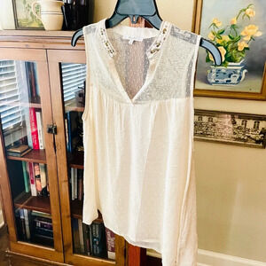 Miss Me women’s sleeveless lacy dot blouse beaded neckline SZ S ivory