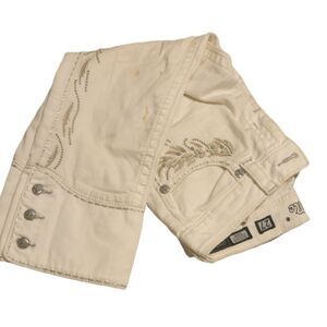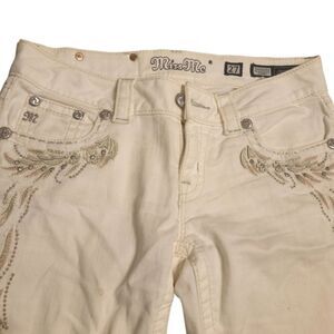 Miss Me JP5543P2 Capri Women’s Sz 27White Rhinestones Embroidered Button & Zip