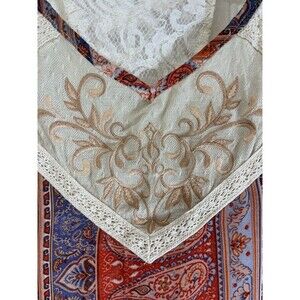 "Miss Me"Lace & Paisley Sleeveless V Back sheer top. Sz XS Red/Blue/Coral