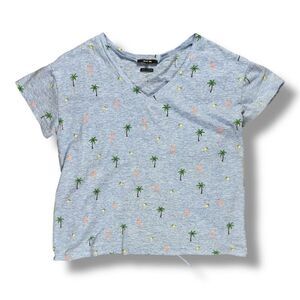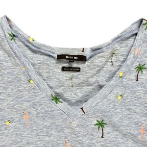 Miss Me Women’s tropical-print T-shirt with lace Up tie back, Sz M