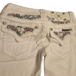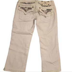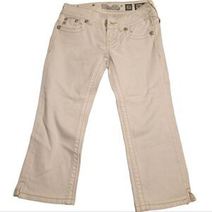 Miss Me White Denim Studded Floral Pocket Capri Jeans Womens Size 25 JP5002P74