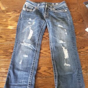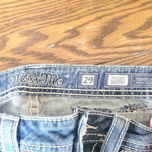 Miss Me distressed cropped jeans sz 29x22 in good used condition with some wear as shown in the pictures. Happy to bundle. Open to reasonable offers.