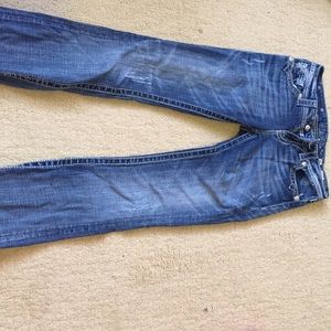 Miss me jeans with diamond studs on the corner of the back pockets, a great wash, and perfect fit!