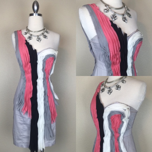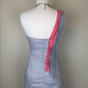 Description: Absolutely beautiful party dress. One shoulder with beautiful front ruffle decoration. It extends to the back. Hidden back zipper with top hook. Gorgeous! 😍