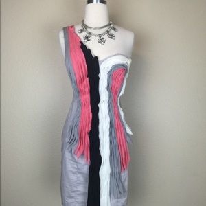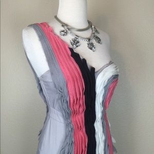 Condition: Overall in great condition. Does have 2 minor stains at the bottom front. By the white ruffle and just to the left of it in the grey area of the dress. Picture included. Major price reduction for flaw.