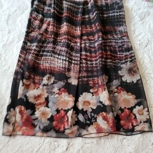 Miss Miss Sleeveless Wavy Plaid Floral Print Hem Crew Neck Dress Size M