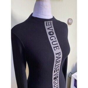 Add a touch of elegance to your wardrobe with this Miss Moi black tunic blouse. The blouse features a mock neck and long classic/fitted sleeves, perfect for any occasion, whether it's a party or a casual day out. The pullover closure and knit fabric make it easy to wear and breathable, while the 90% viscose and 10% elastane material ensures a comfortable fit. The blouse is embellished with rhinestones, giving it a sparkling and stylish look. This blouse is a must-have for any fashion-forward woman. It is suitable for all seasons and can be worn in winter, fall, and spring. The blouse is hand wash only and is available in size unknown - no tag!. Miss Moi is a trusted brand known for its quality and style, and this blouse is no exception. Add it to your collection today and elevate your wardrobe to the next level.