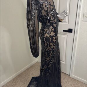 Miss Ord Elegant Black Sequin Evening Gown