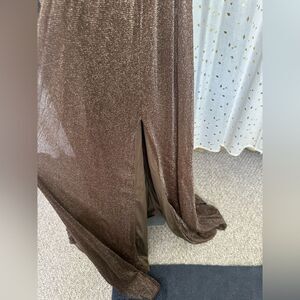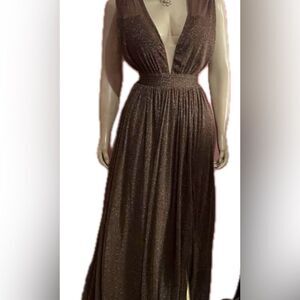 Miss Ord NWT Plunging High Slit Shimmer A Line Pleated Padded Gown Dress L