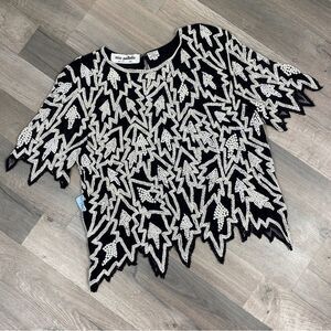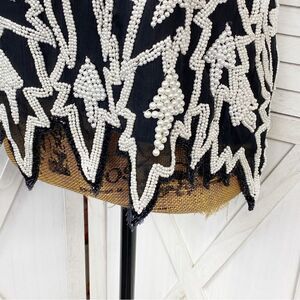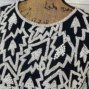 Miss Paillette Pearl Embellished Silk Pullover Blouse Black White Large
